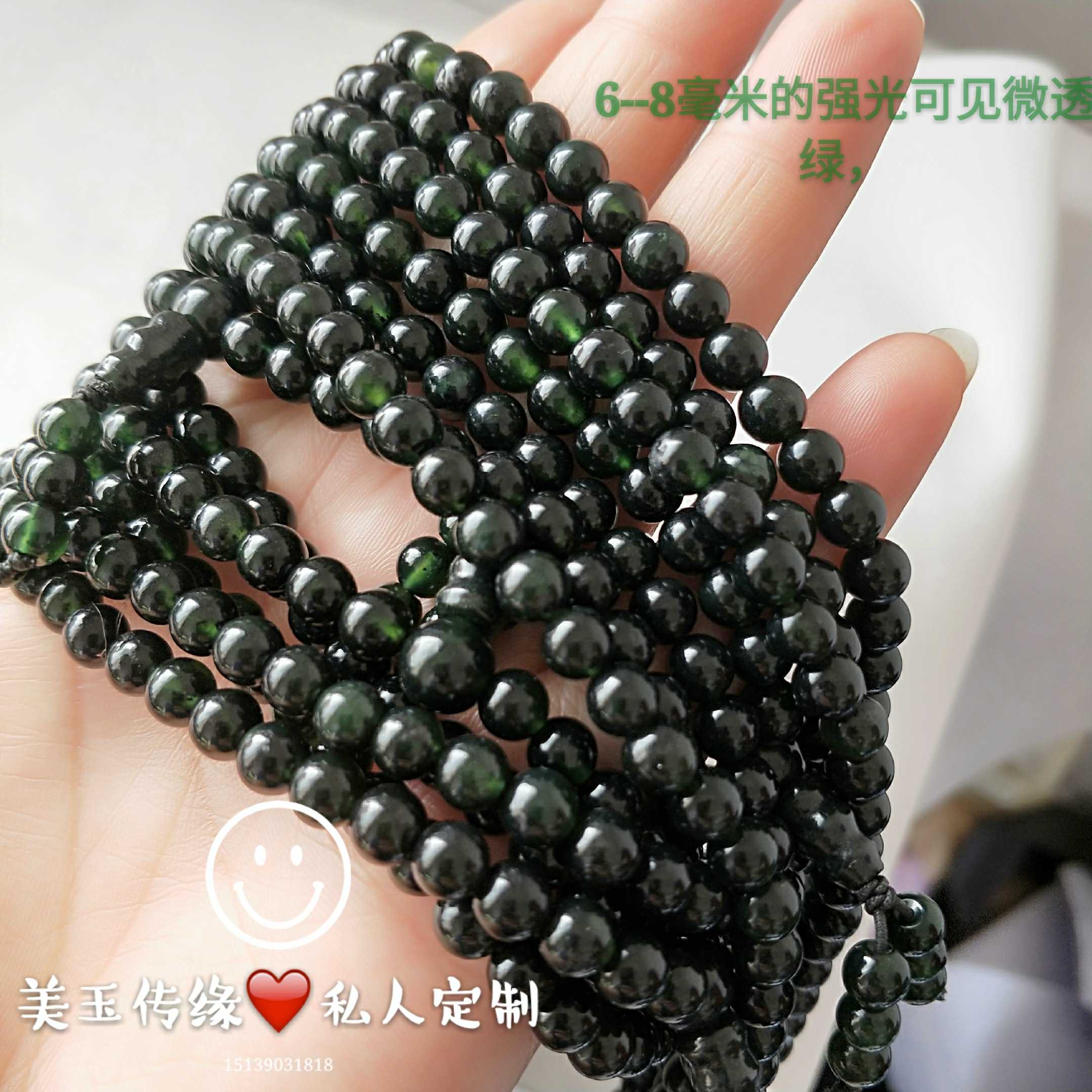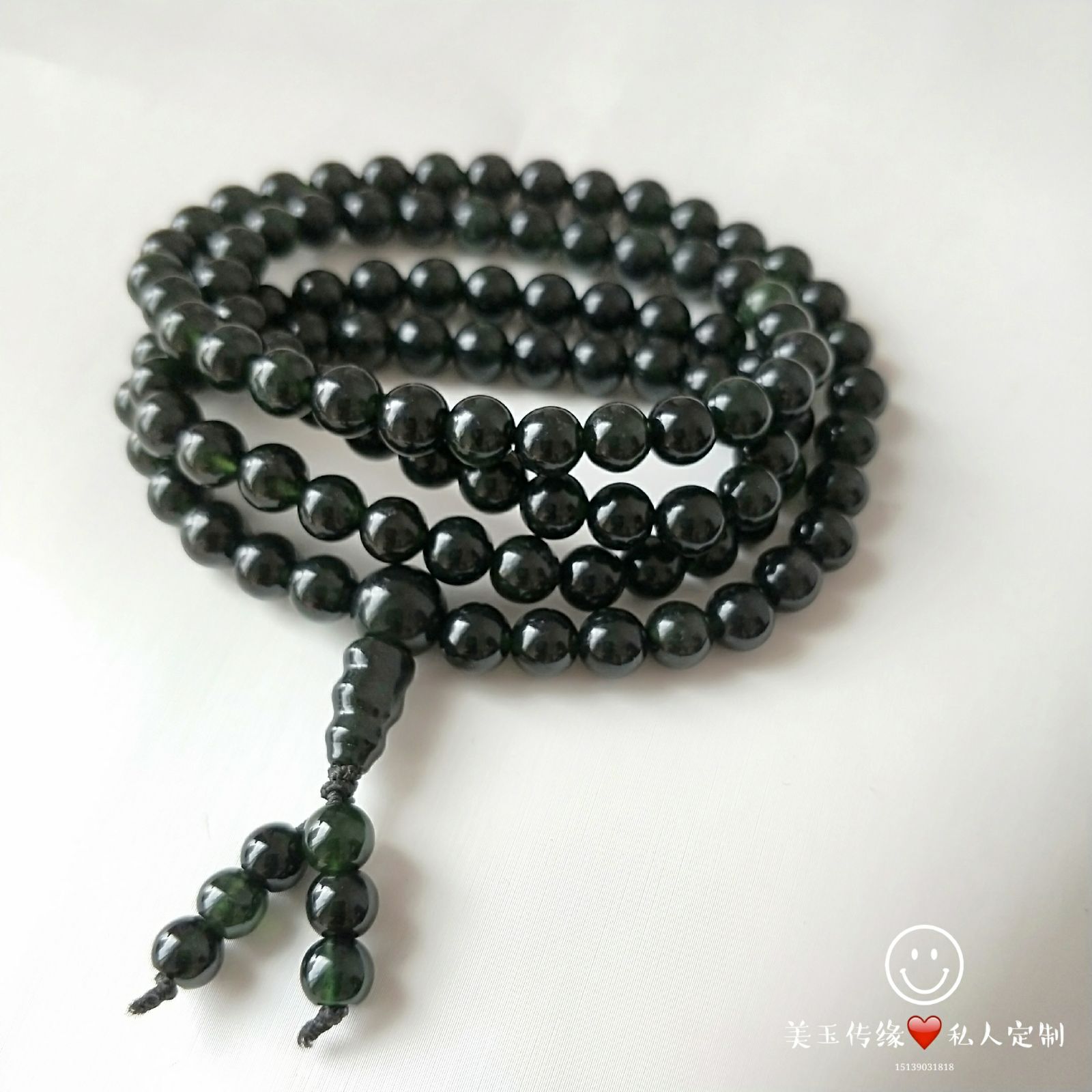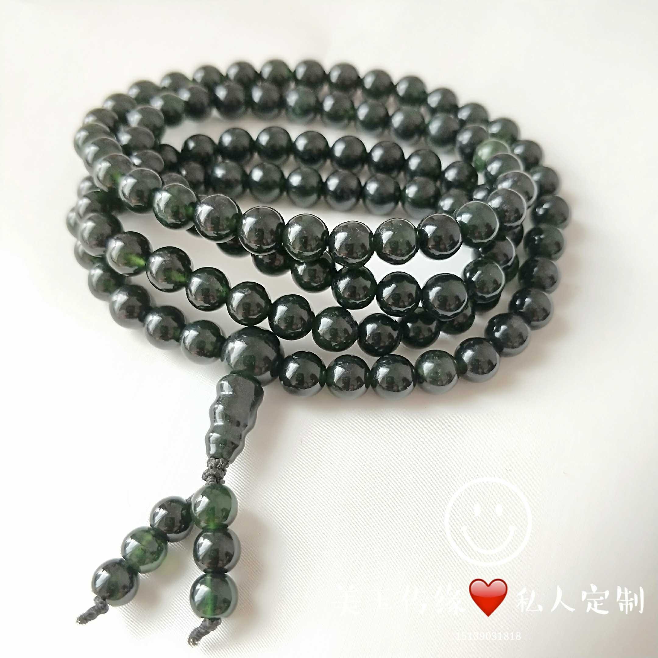 Natural ink jade bracelet live magnetic ink green jade 108 Buddha beads multi-layer male hand string Lam Tin Jade handheld neck hanging tower female