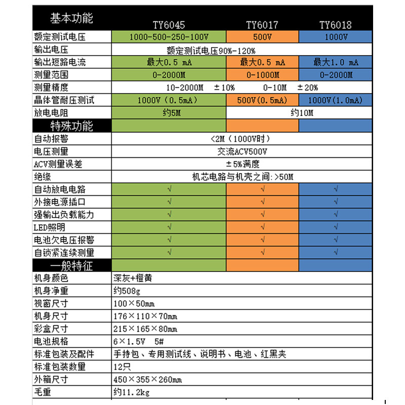 6017 standard 500V send 9V external plug 6018 standard 1000V send 9V external plug 6045 four-speed measurement send 9V external plug