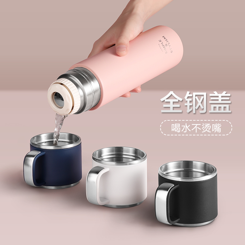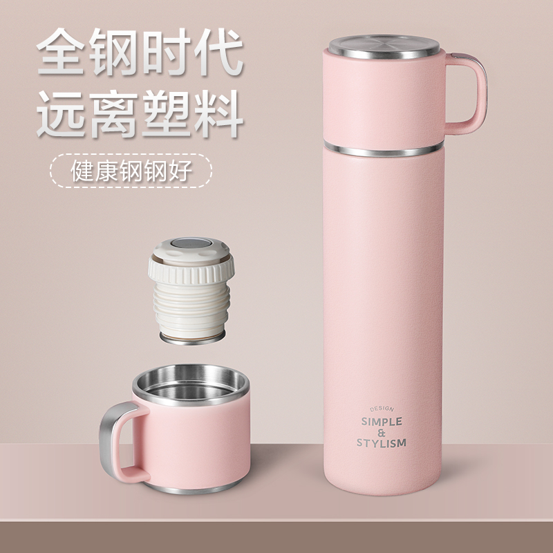Thermos cup 316 stainless steel large capacity girls water cup Pink with cover cup men's high-grade tea cup
