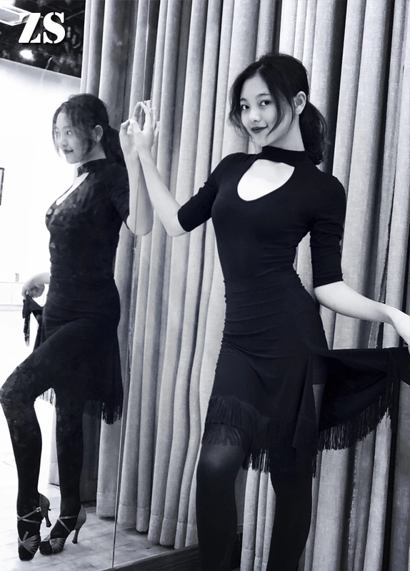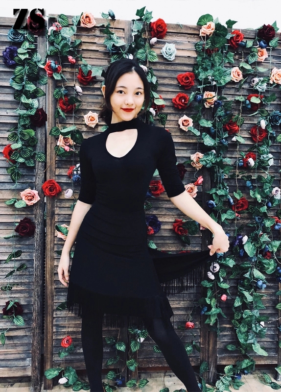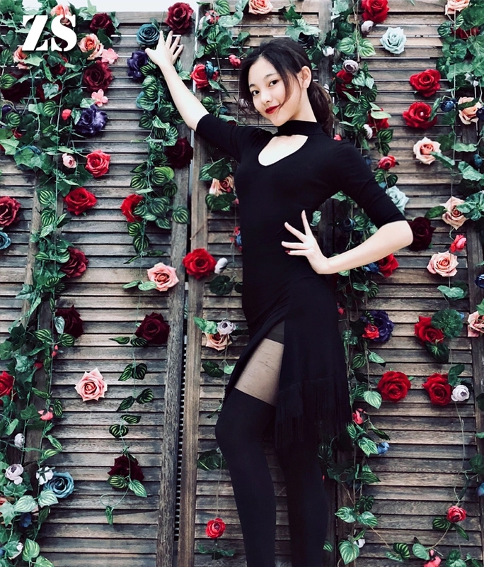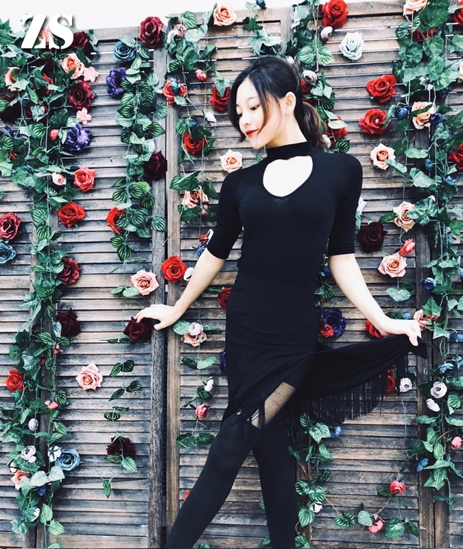 New Latin dance suit side or front open fork appear legs long flow Su half body practice skirt workout L143