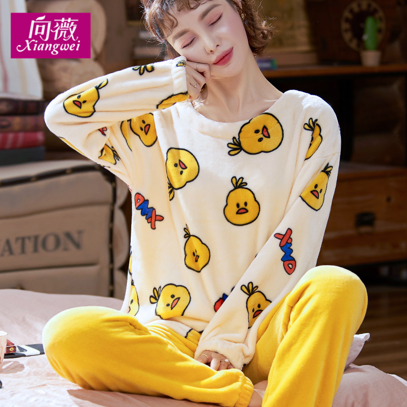Fall and Winter thickening coral velvet lady suit plus cute flannel long sleeve large size sleeve home suit