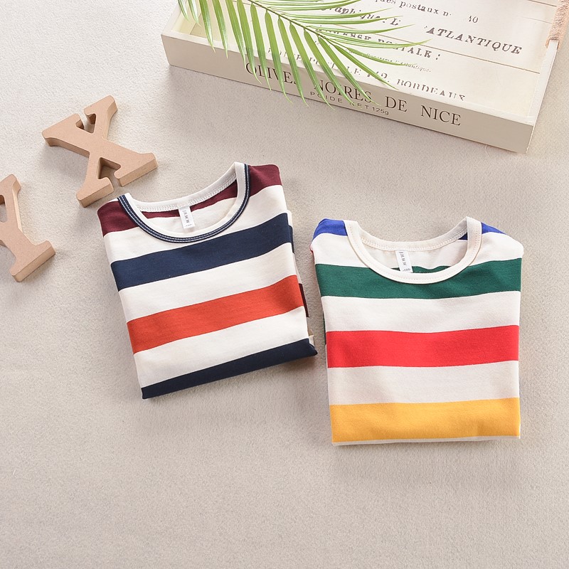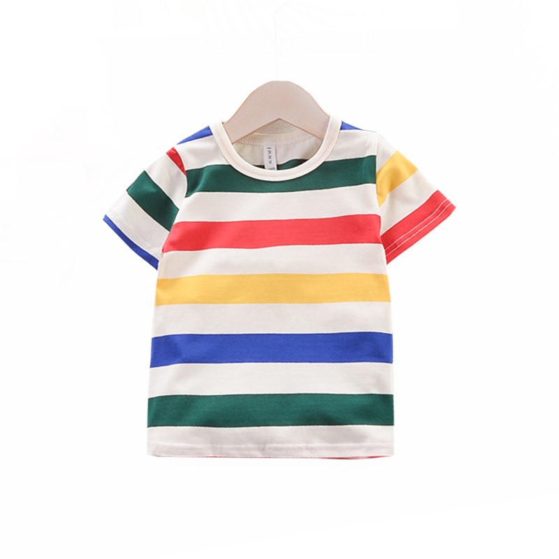 2019 Summer boy Short sleeves Rainbow striped T-shirt 5 Children pure cotton 4 Children fit children 3-year-old baby half sleeve