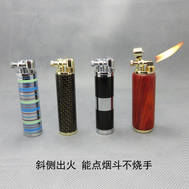 Spike imitation retro oblique side fire inflatable sandalwood shell copper shell personality pipe special cylindrical grinding wheel lighter