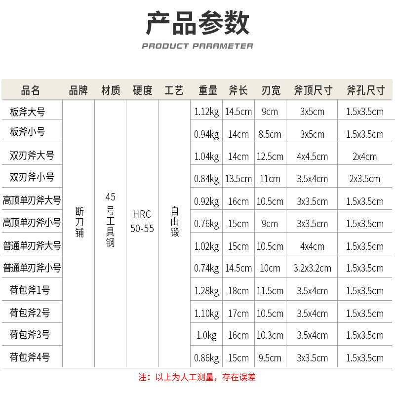 Double-edged Axe Large Double-edged Axe Small Plate Axe Large Plate Axe Small Ordinary Single-Edge Axe Large Ordinary Single-Edge Axe Small High Top Single-Edge Axe Large High-Top Single-Edge Axe Small Pocket Axe No. 1 Pocket Axe No. 2 Pocket Axe No. 3 Pocket Axe No. 4 40CM Acacia Handle