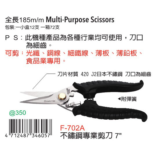 Taiwan original F-702A FUJIYA stainless steel special scissors 7 inch 185mm iron scissors