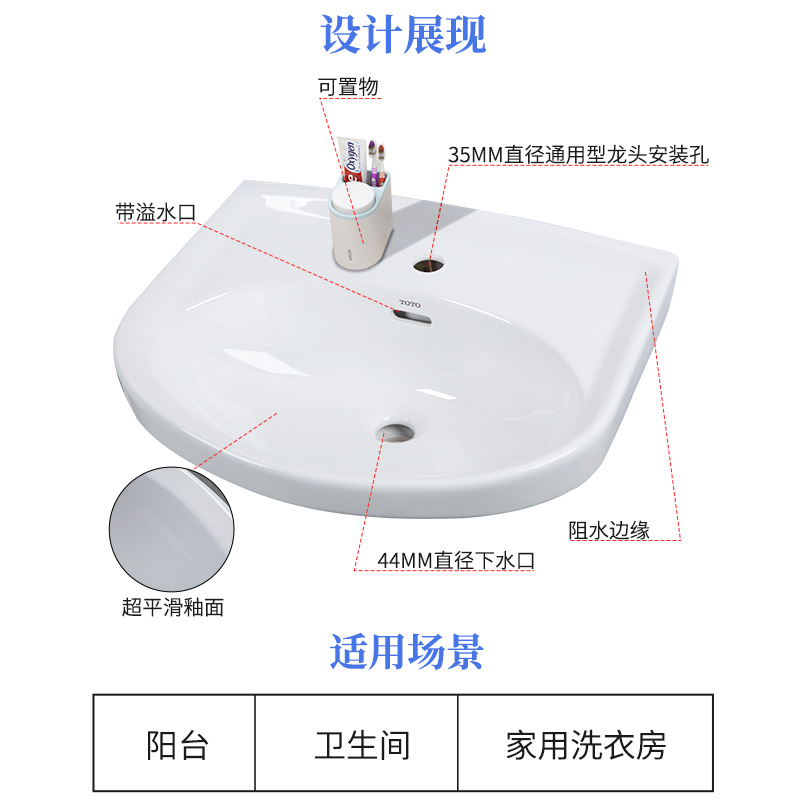 TOTO Upright Post Basin LWN251CB Balcony Basin Makeup Room Wall-mounted Washbasin Single Hole Ceramic Wash Washbasin