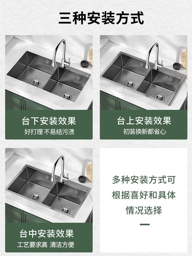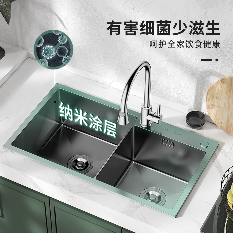 Wrigley stainless steel black nano sink package Home kitchen handmade double sink sink sink Under the table washing basin
