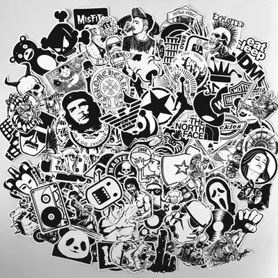 120 black and white suitcase stickers Tide brand waterproof personality locomotive helmet computer skateboard guitar stickers