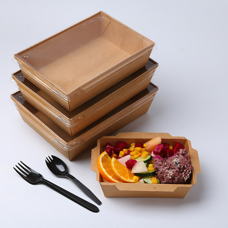 Disposable lunch box kraft paper salad box sushi box delivery light food packing box rectangular fruit cut lunch box