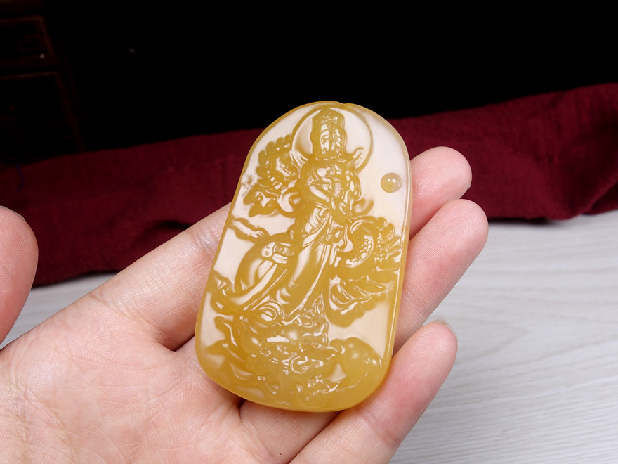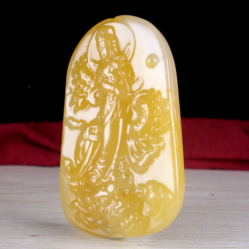 Leaks! Yellow Meat Nine Dragon Guanyin Yunnan Longling Huanglongyu "Bathing the World" pendant with certificate