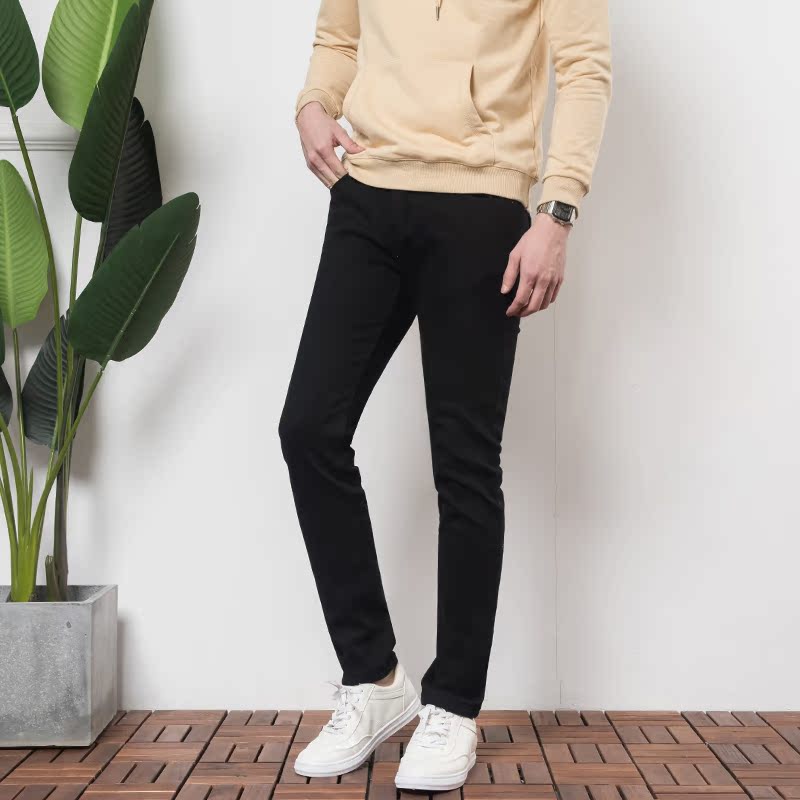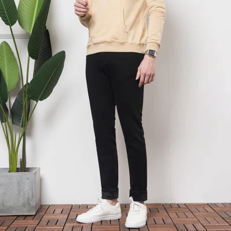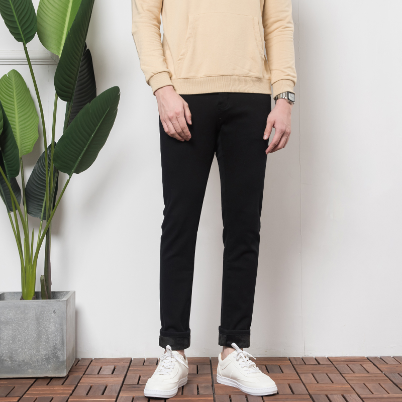 (limited-time clear cabin) autumn and winter men's Han wind plus suede pants with jeans long pants washed and retro pants Chaude black