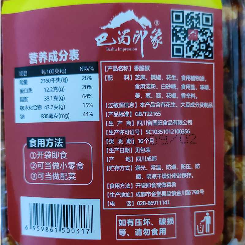 BasShu Impression Sichuan Terfic and Crisp Peppers 500g Spicy Flavor Fried Chili Crisp Crisp Dried Peanuts Snack Snack Snack