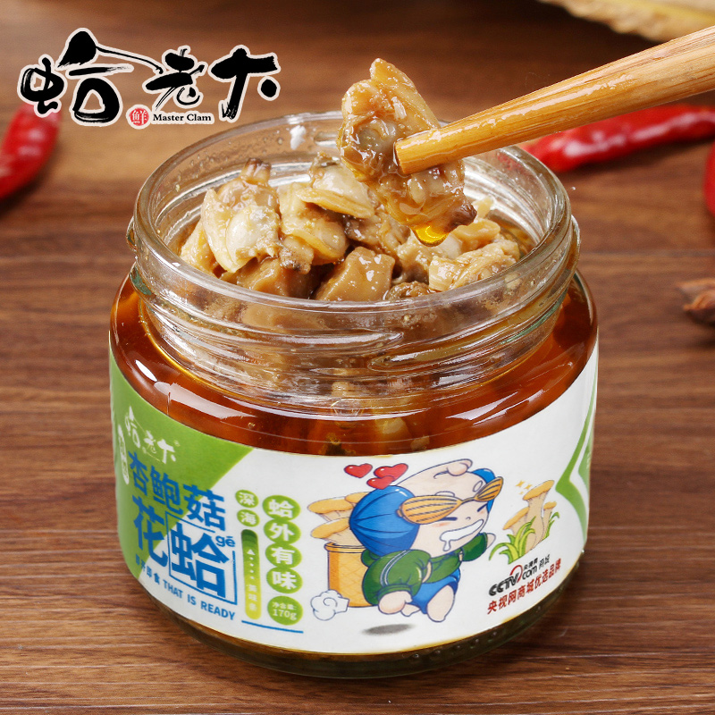 Clam boss Pleurotus mushroom Clam ready-to-eat seafood leisure snacks Clam net red snacks specialty cooked flower armor 170g