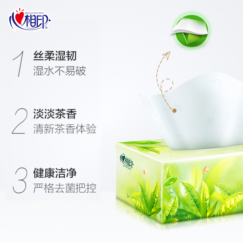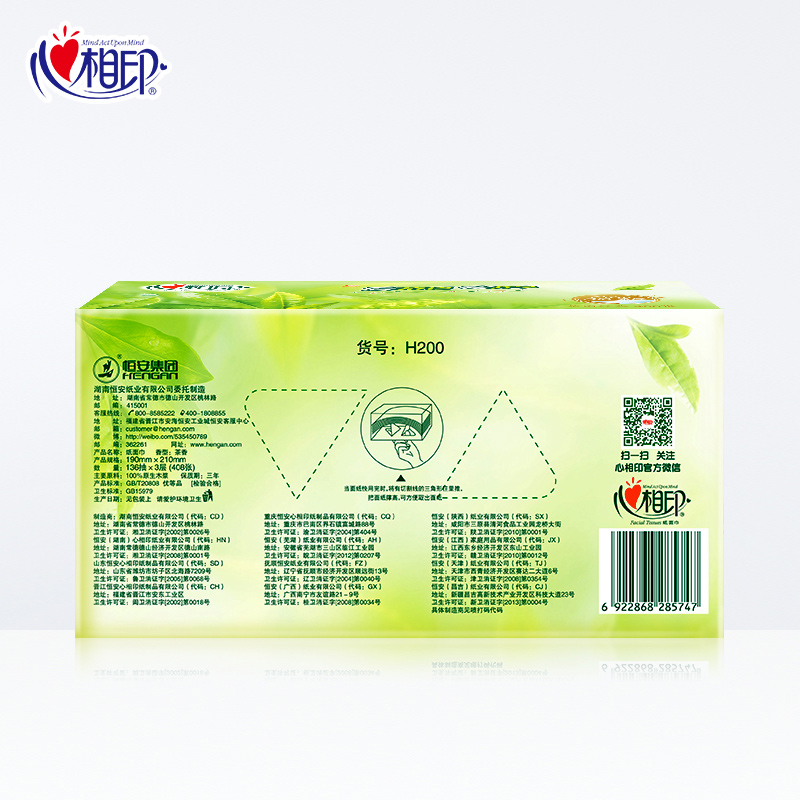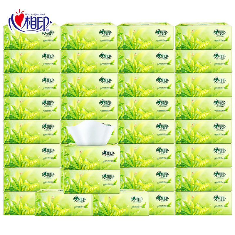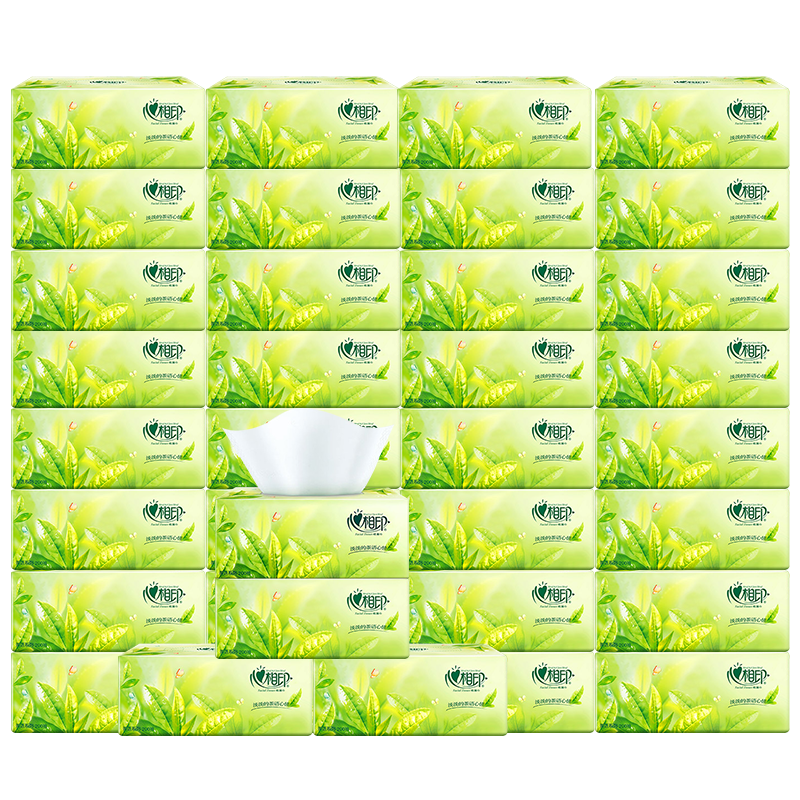Heart-printed removable toilet paper H200 pumping 36 boxes of tea-scented facial tissue business model Tea language removable toilet paper hard box of 400 sheets