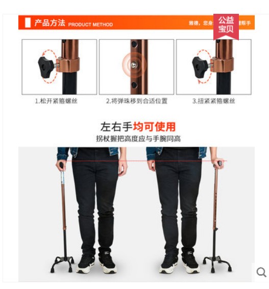 Rehabilitation of the elderly Walking hand-held frame walker Fall-proof ultra-light walking crutches support crutches for the elderly Hand-crutched war sticks
