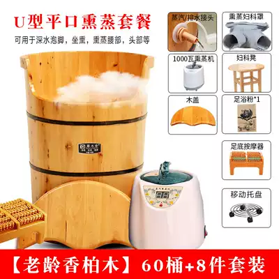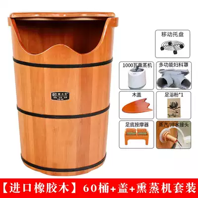 Cedar wood 60 steamed barrel 4-piece set (lid massage stool foot bath bag tray) rubber wood 60 steamed bucket 4-piece set (lid massage stool foot bath bag tray) cedar wood 60 steamed