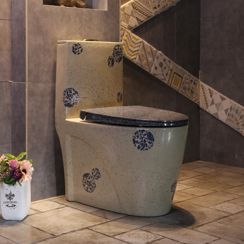 Jing Yan round printed green flower porcelain Chinese art ceramic toilet Home Makeup Room Siphoning Type Water Pumping Common Toilet