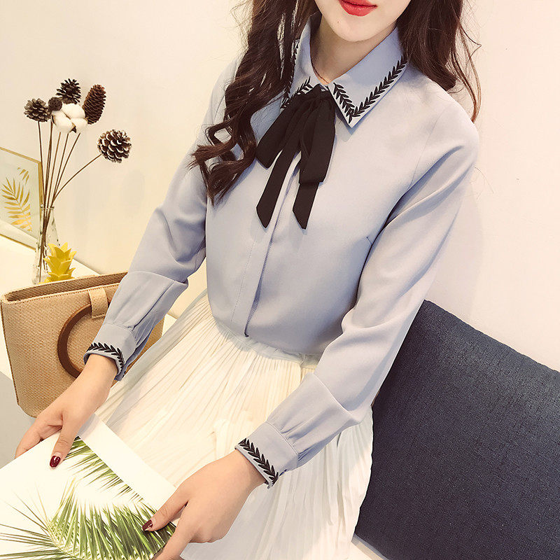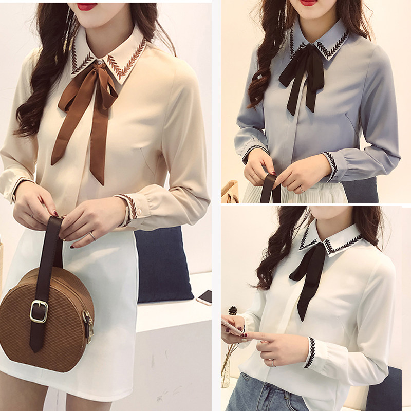 Shirt woman long sleeve 2022 autumn winter new Korean version plus suede thickened butterfly knot OL warm blouse slats bottom white shirt