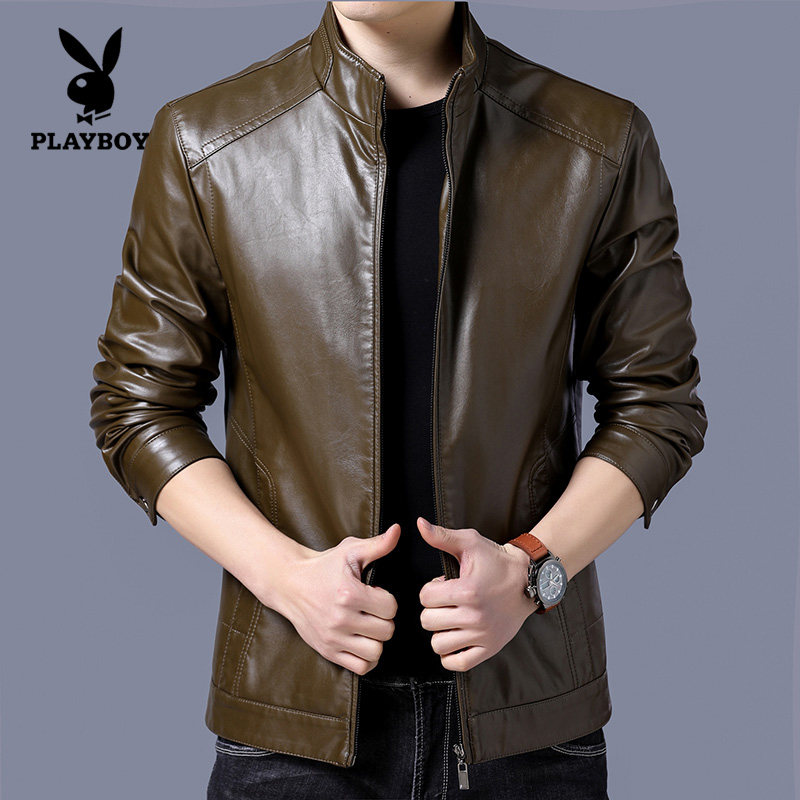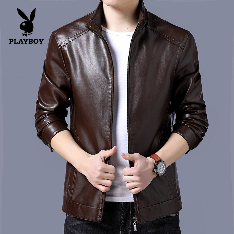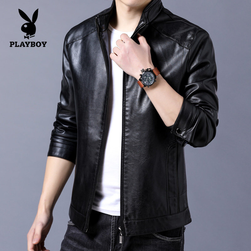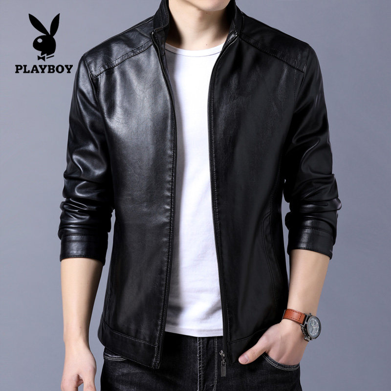 Flowers Playboy men's leather clothes spring autumn season new Korean version Body Trend Handsome PU leather jacket Short-style jacket man