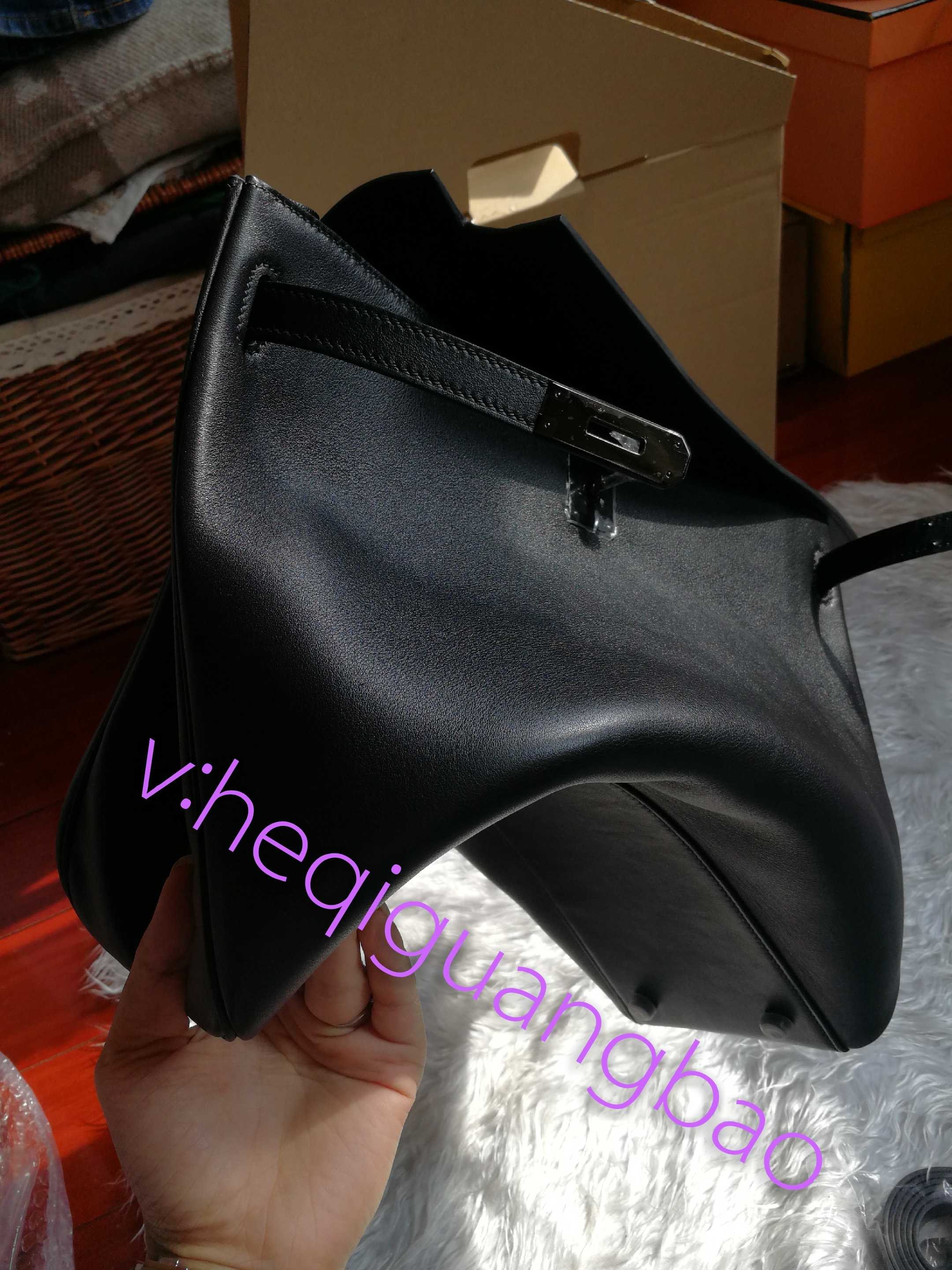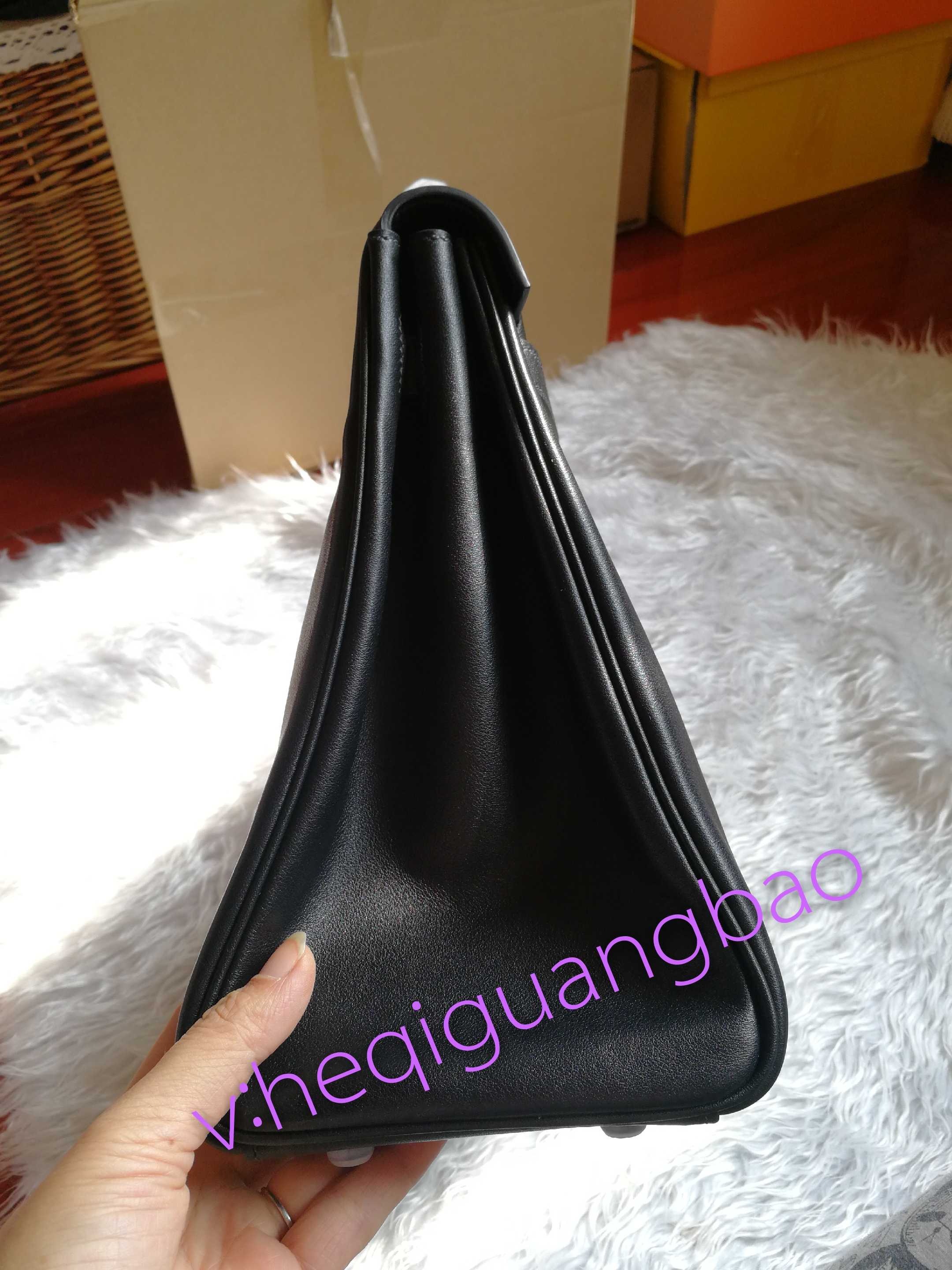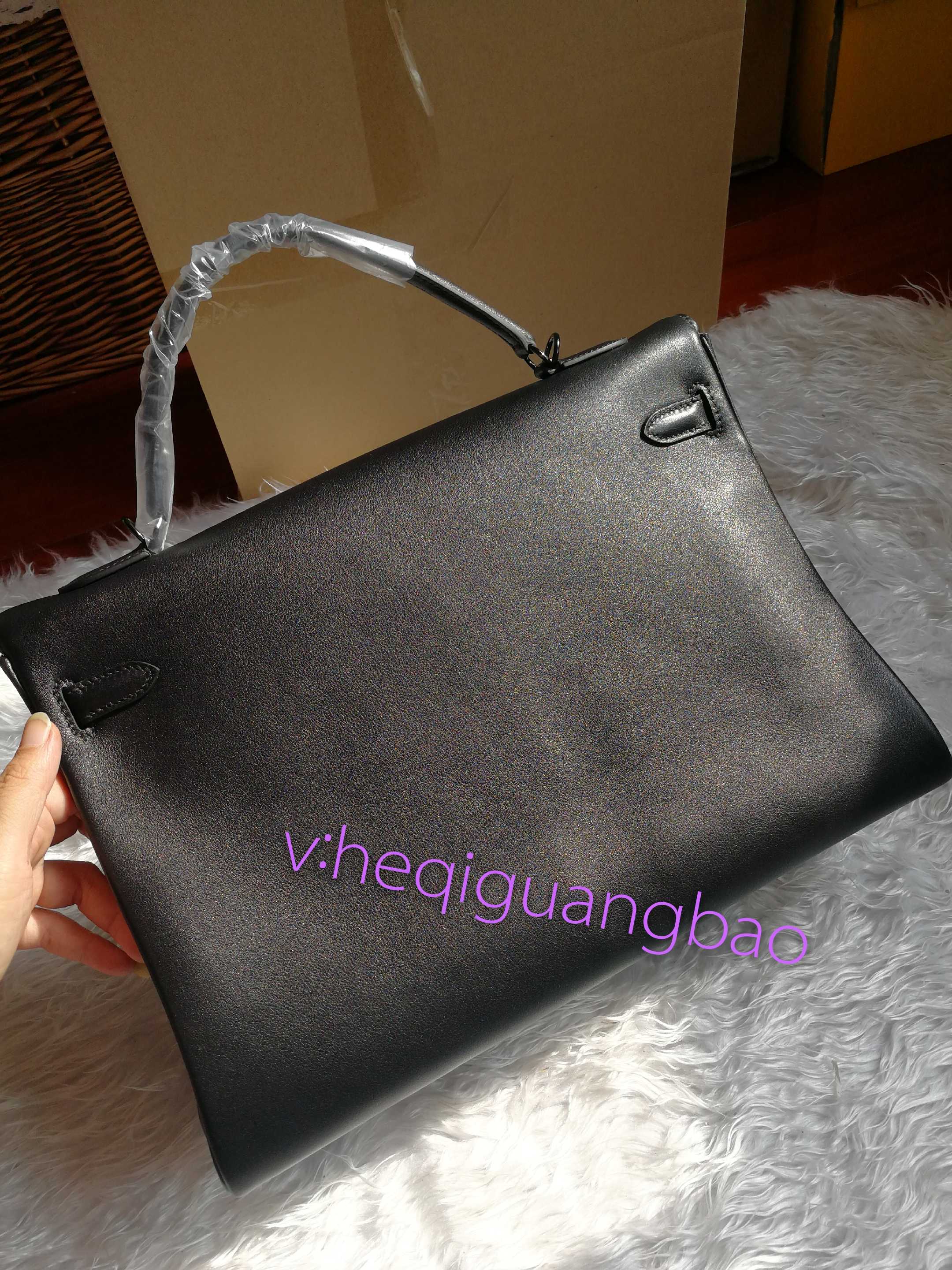 35cm black swift leather so black hand-stitched wax thread Kelly KL bag hand-held one-shoulder unisex