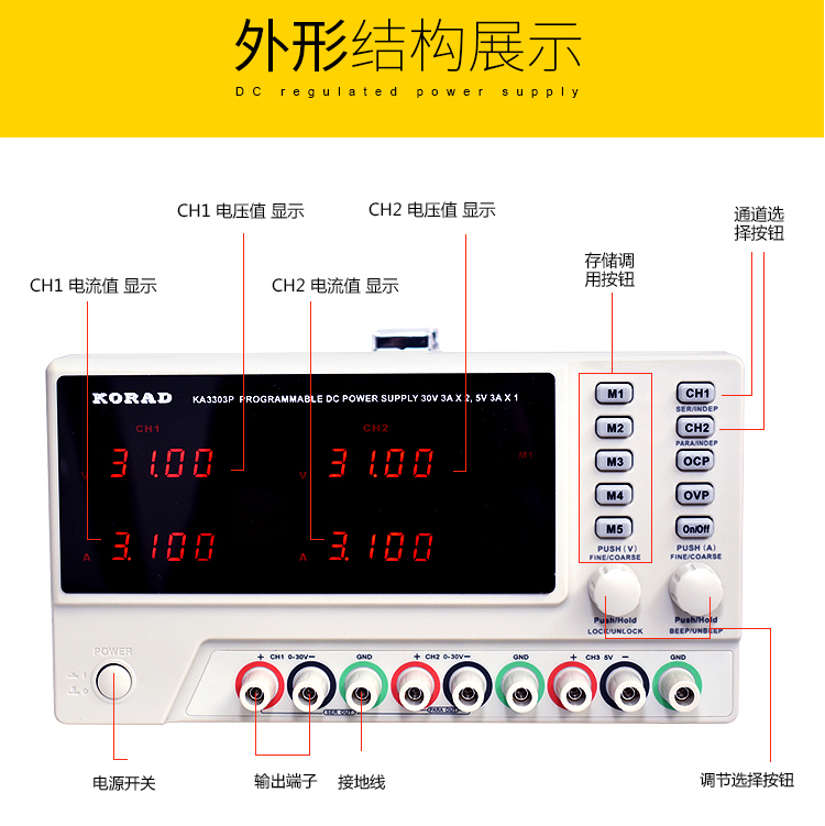 KAROD Cowise source 30V 5A Three-way adjustable DC stabilized voltage supply KA3303D P programmable design KA3305D
