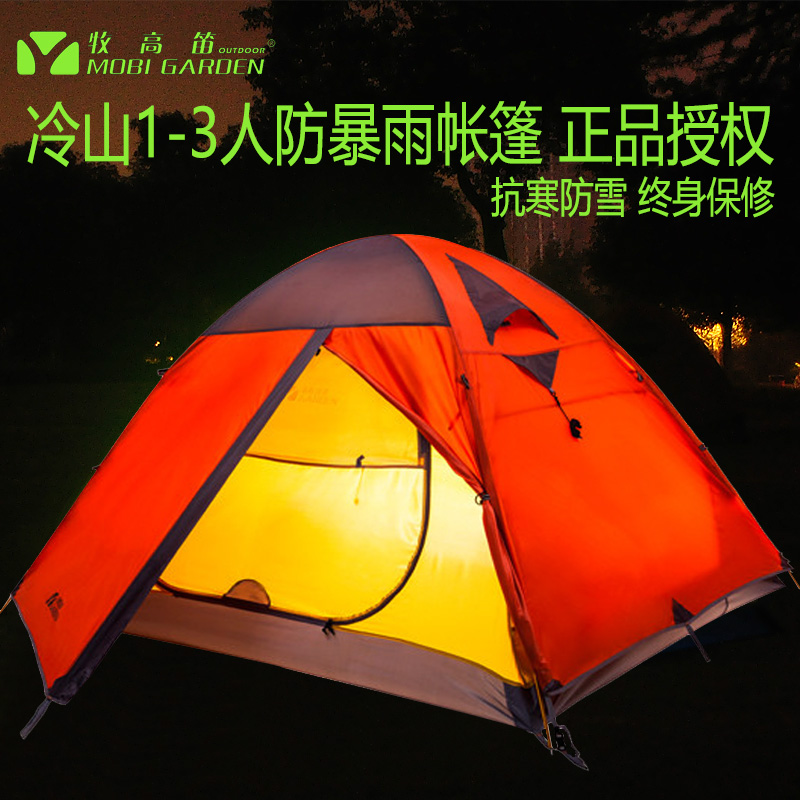 Mugao Di Lengshan 2plus Four Seasons Tent Double Outdoor 3-4 People Double-layer Field Camping Anti-storm Big Tent