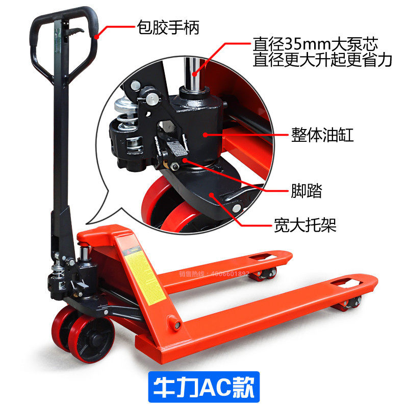 Niu Li manual stacker hydraulic truck 2 tons 3 tons 5 tons trolley raised hand-pulled pallet truck ground ox cart