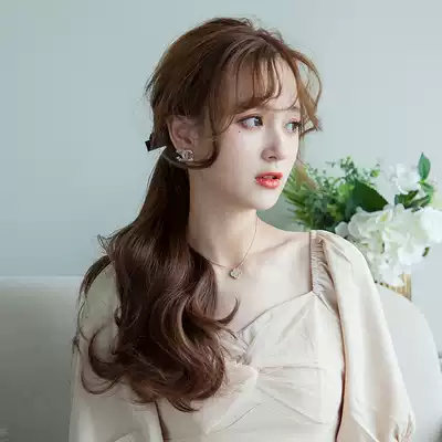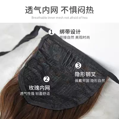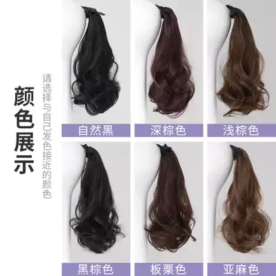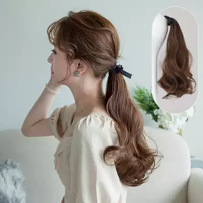 Pear flower curly short ponytail wig Female long curly hair big wave temperament short ponytail simulation medium and long version of the strap type