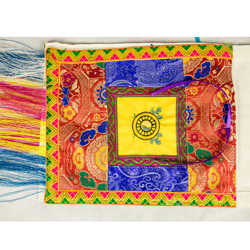 Buddhist silk mass bag warp cloth yellow dark flower with streaming suver cuddling bag Tibetan with bookcloth embroidery Faber bag