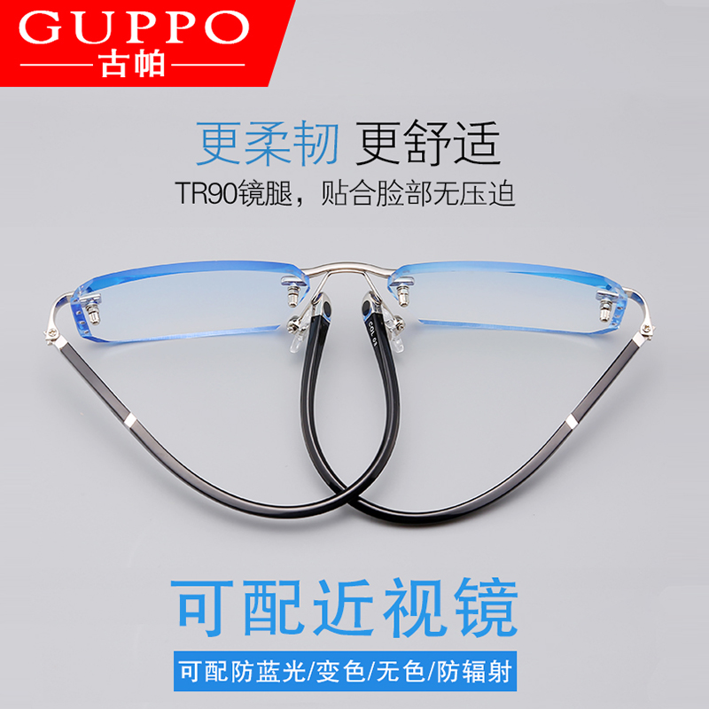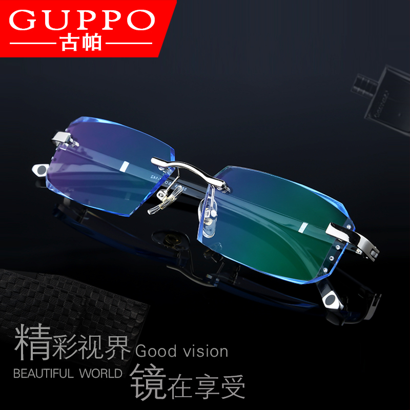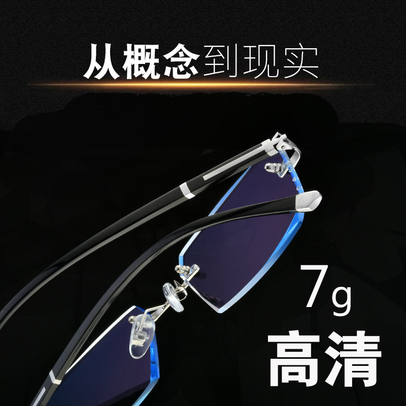 With finished frameless myopia glasses men's anti-blue diamond trimming glasses Women's Flat face astigmatism color glasses