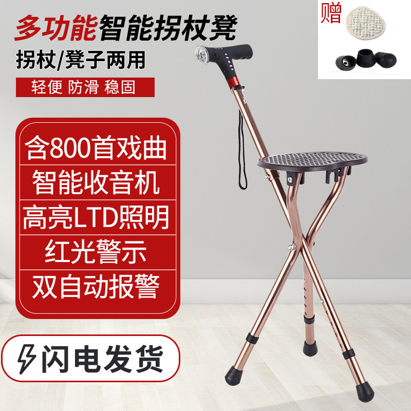 Weight 900 grams two pounds less! Lightweight effortless one cane dual use) non-functional bird handle crutch stool one cane three uses) high lighting crutch stool one cane four use) falling alarm + high brightness lighting five use recommended) radio + fall alarm lighting fifteen days free trial three years warranty shipping insurance six hot sale) massive song radio alarm double entertainment function 800 songs + radio accompaniment to the fall alarm elderly fall accident can be built-in 4 high brightness LED lamp beads + (non-functional non-adjustable) bow handle