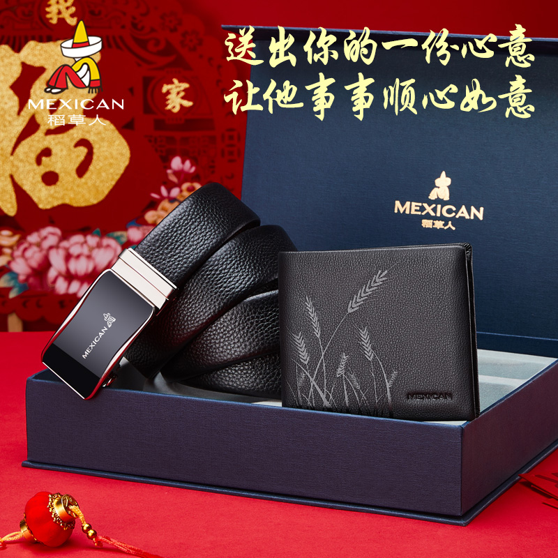 2021 new scalaman wallet leather strap gift box set of leather cow leather men's belt upscale gift daddy gift