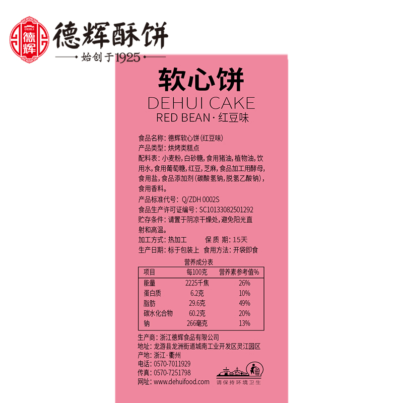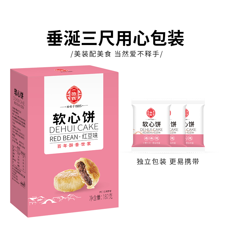 (New product)Dehui Red bean soft heart cake 182g Office leisure net red snack snack pastry sandwich cake