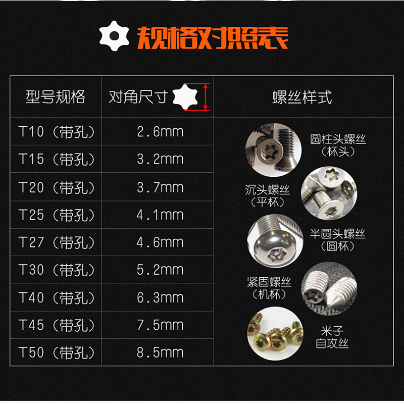 Inner hexagonal star plum screwdriver with hole in the middle Hollow t20t25 flower-shaped rice-shaped screwdriver tool set