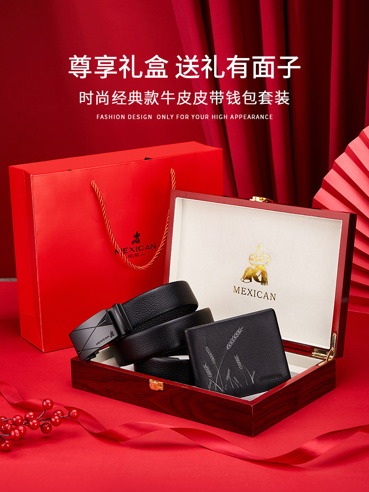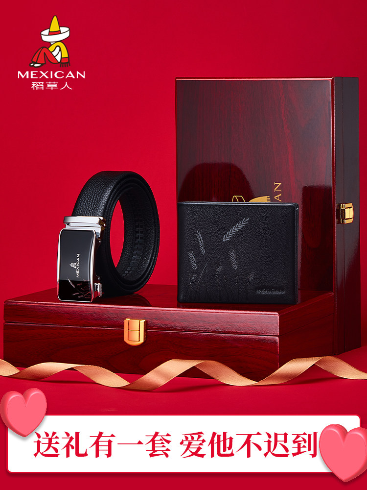 Scarecrow men genuine leather wallet belt gift box set for my husband and boyfriend birthday gift high-end practical