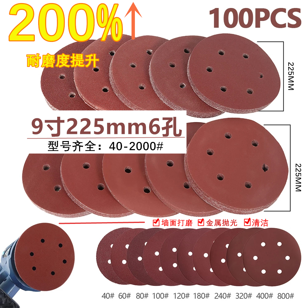 Light grey white rice white dark grey grey silver color orange red lotus red lotus root color watermelon red sky blue peacock blue 9 inch 6 holes sandpaper 60 mesh (100 pieces) 9 inch 6 holes sandpaper 80 mesh (1