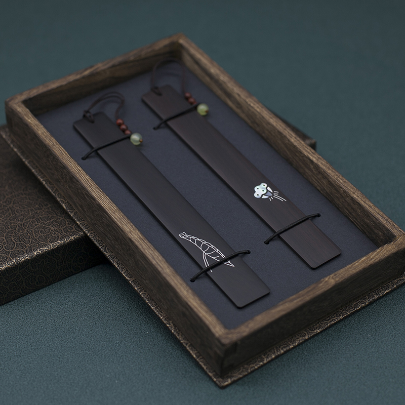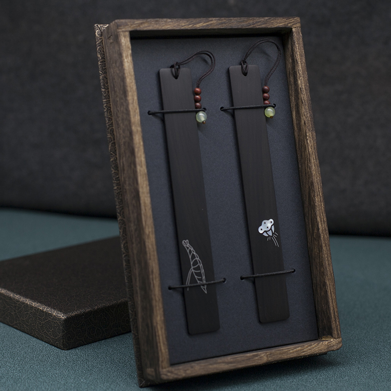 Artisanal Black Sandalwood Lotus Leaf Lotus Leaf Shower Shell Bookmark with Bud To Put Classical Middle Country Wind Couple Gift Suit Lettering-Taobao