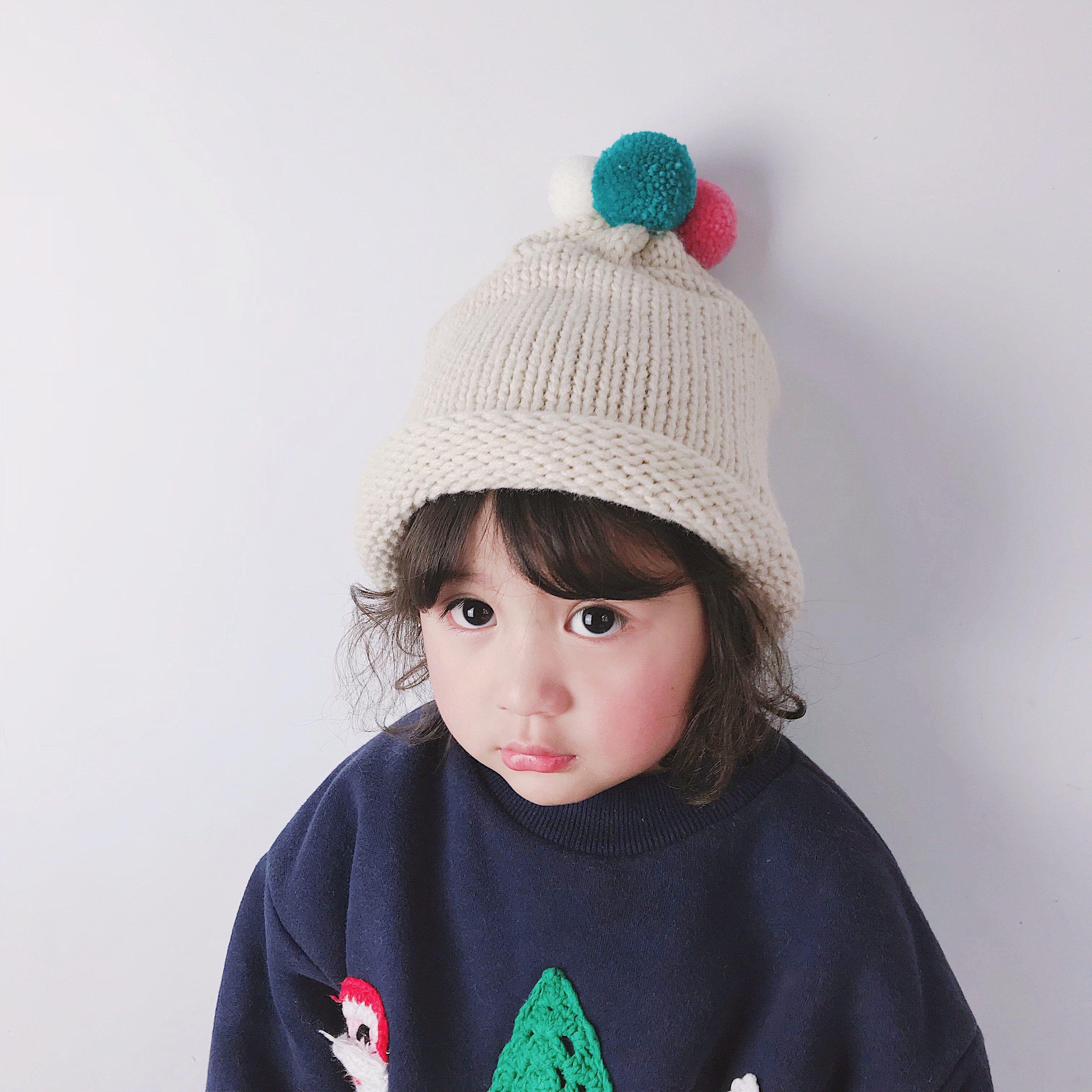 Baby cute hat autumn and winter children's warm knitted hat baby wool pullover hat boys and girls fashion hat tide