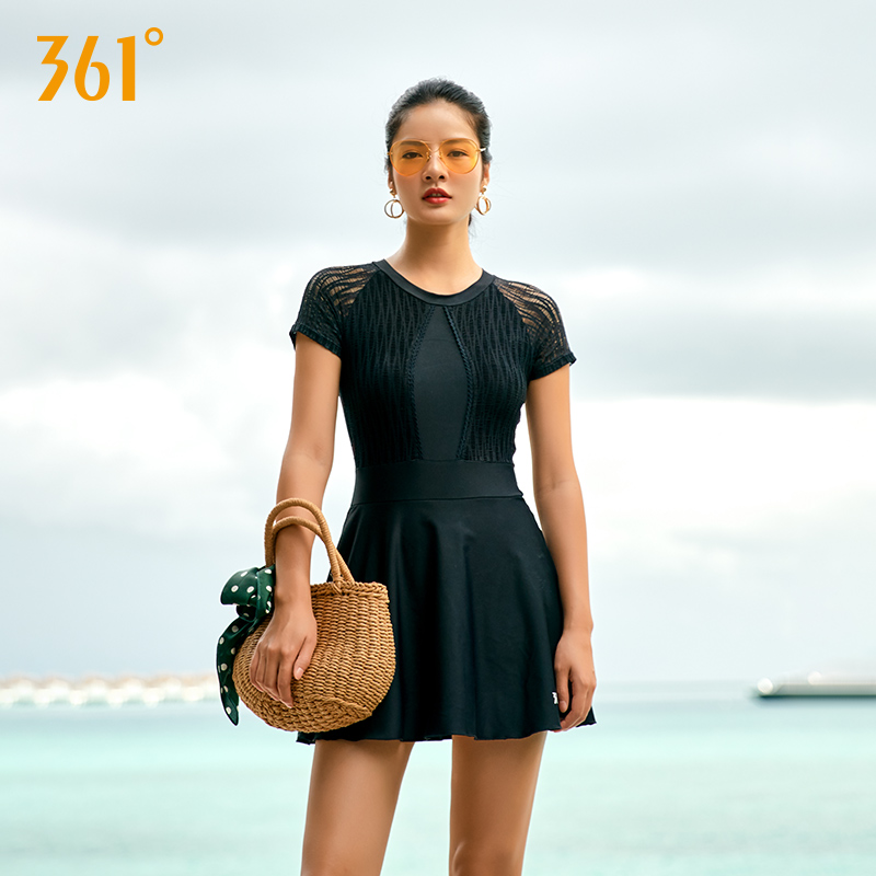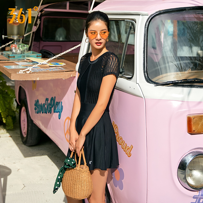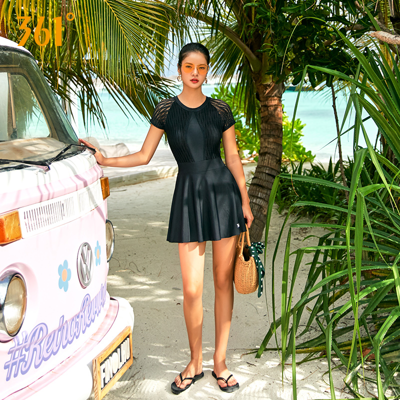 361 short-sleeved swimsuit women's one-piece conservative skirt to cover the belly and show thin fashion Korea 2021 new large size swimsuit