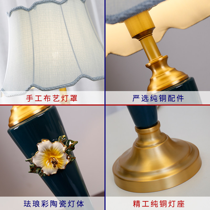 Eurostyle ceramic table lamp All copper minimalist creativity Living room Fashion cozy Wedding Romantic American Bedroom Headboard Lamps
