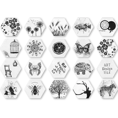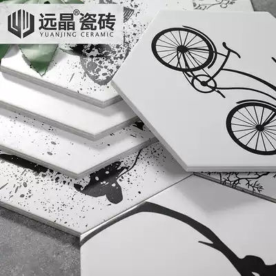 Far Crystal 200x230 Nordic hexagonal tile black and white cartoon animal hexagonal flower tile powder room kitchen wall brick