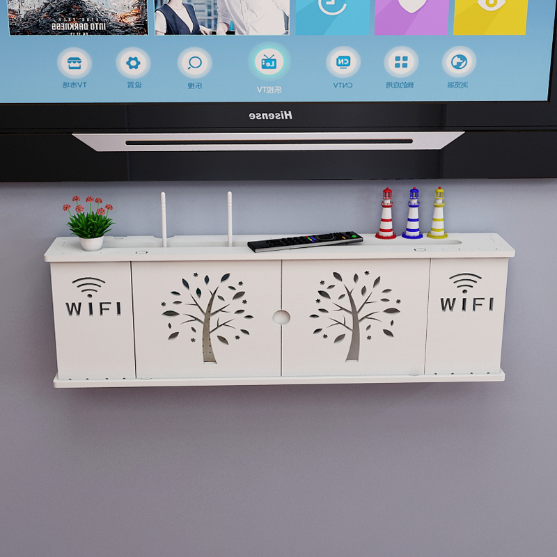 TV set-top box shelf Wall-mounted hole-free plug-in seat wifi router storage box partition shelf