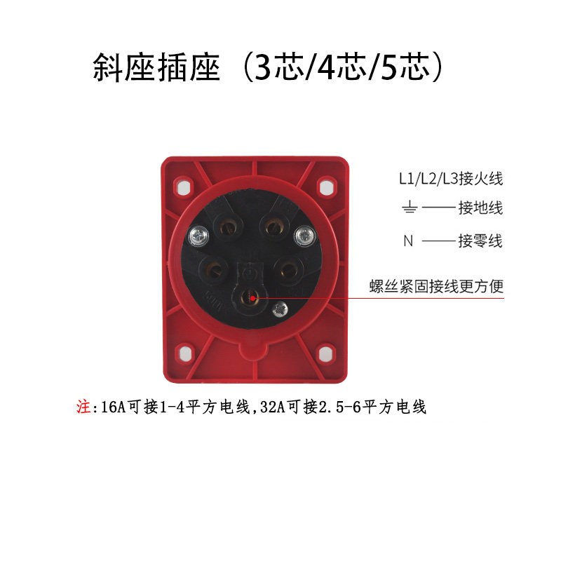 Inclined industrial plug socket 3 core 4 core 5 hole 16A32A waterproof and dustproof aviation plug male and female docking