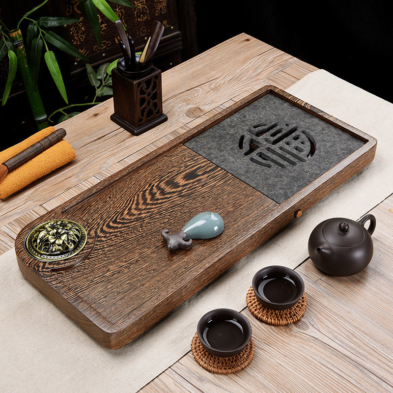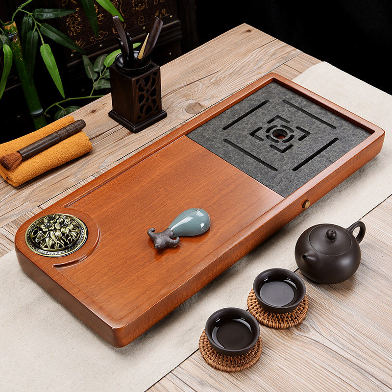 Chicken wing wood tea tray whole household pear solid wood tea table simple water storage dry bubble black stone tea sea drainage tray