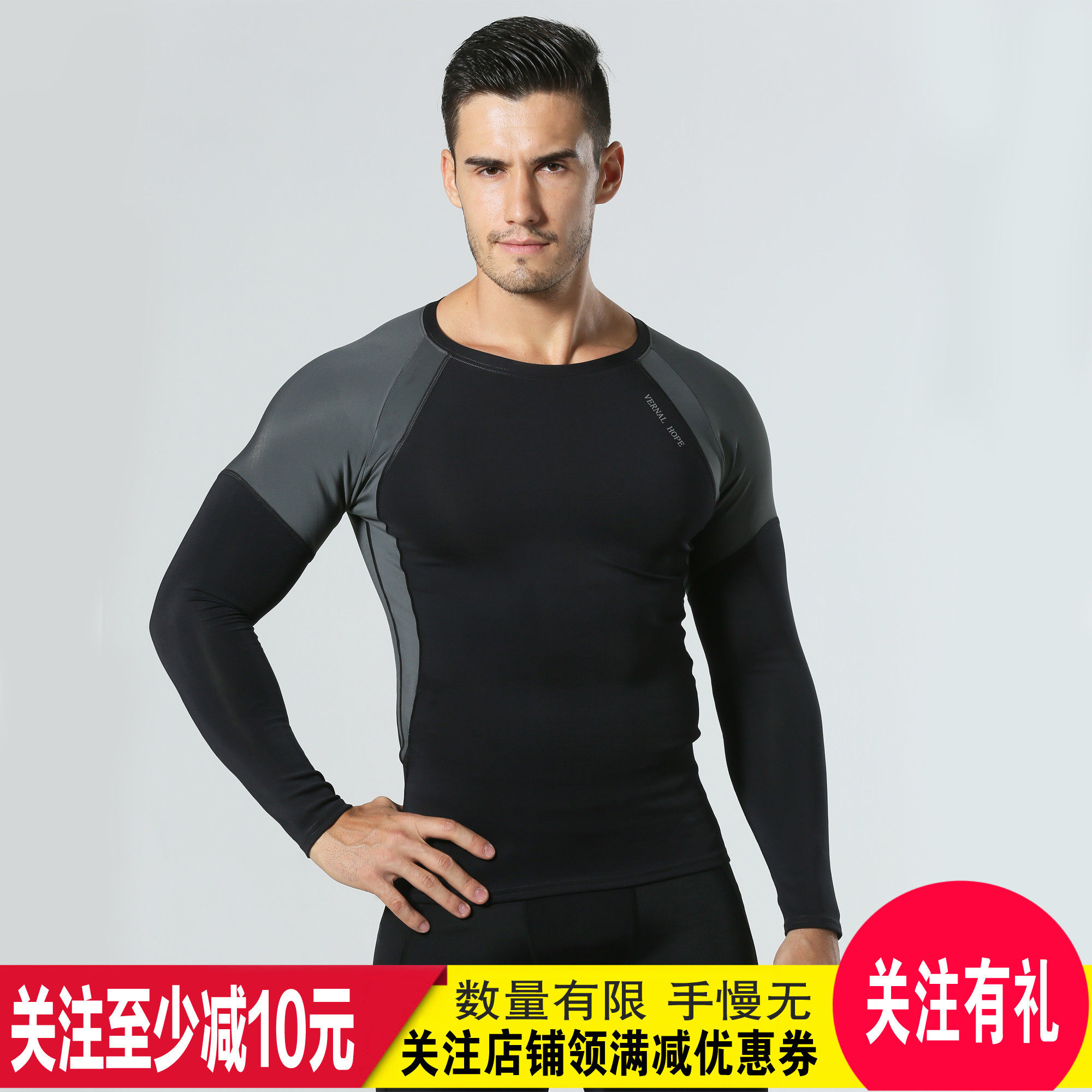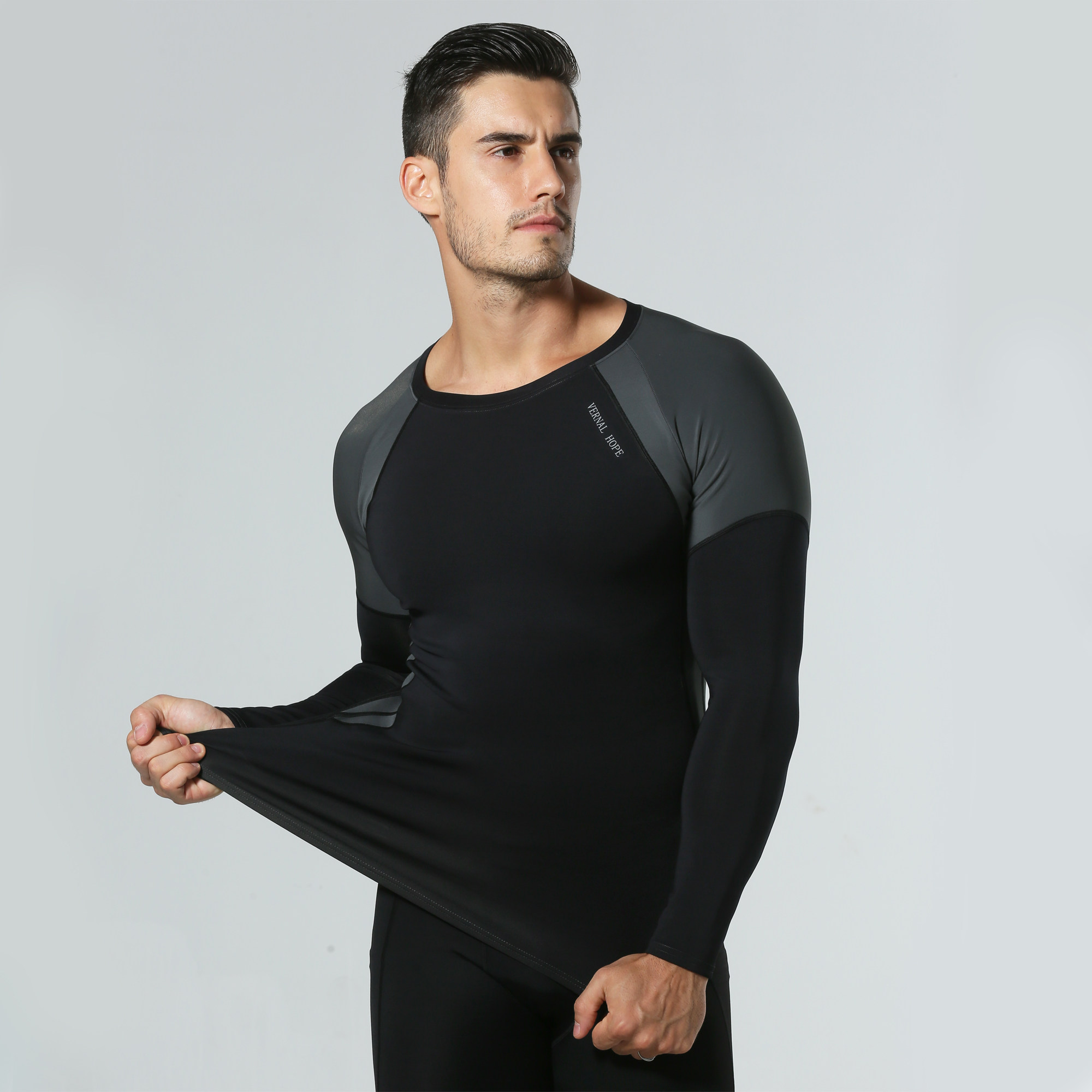 VH Male Sports Fitness Room Tight Fit running elastic speed dry professional training long sleeve gradient compression garment spring