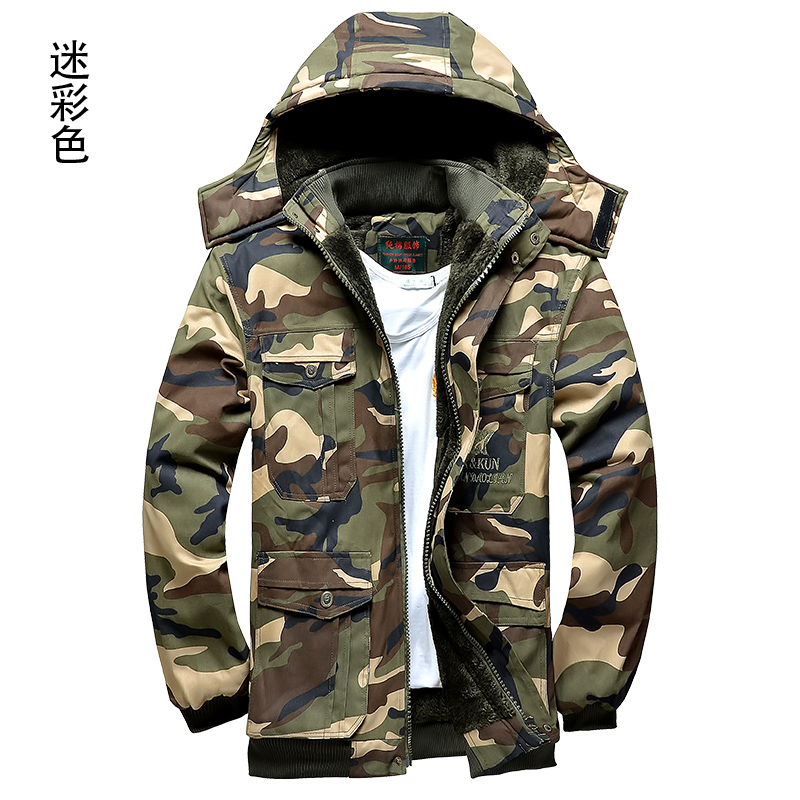 Jacket Style Army Green Plus Suede Cotton Jacket with camouflate and velvety cotton suit