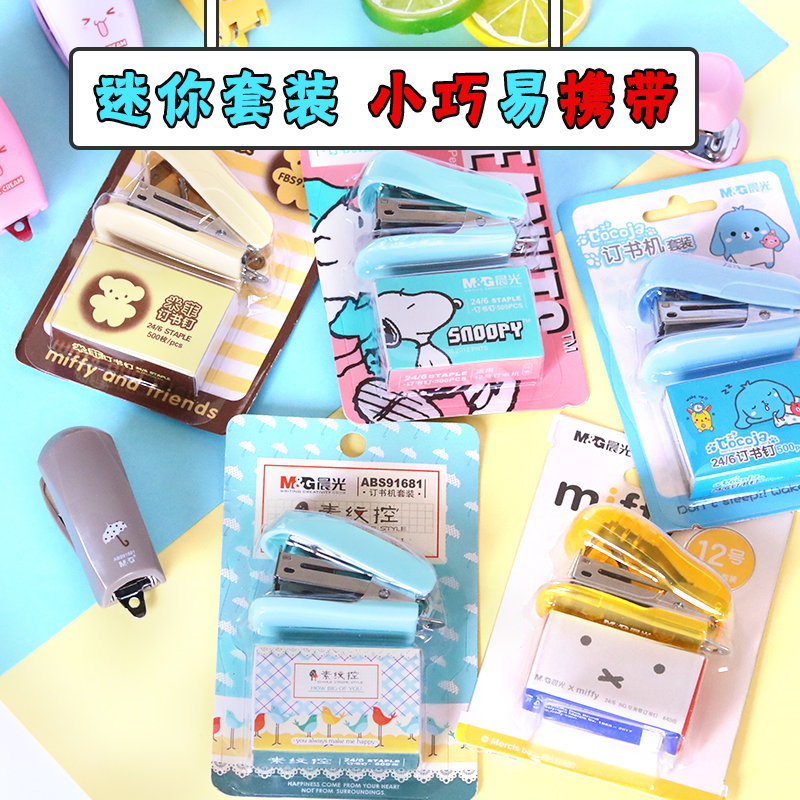 Morning light mini stapler set small portable student female small stapler Cute cartoon girl heart Small portable children's stapler Hand-held multi-function with pick-and-pull stapler