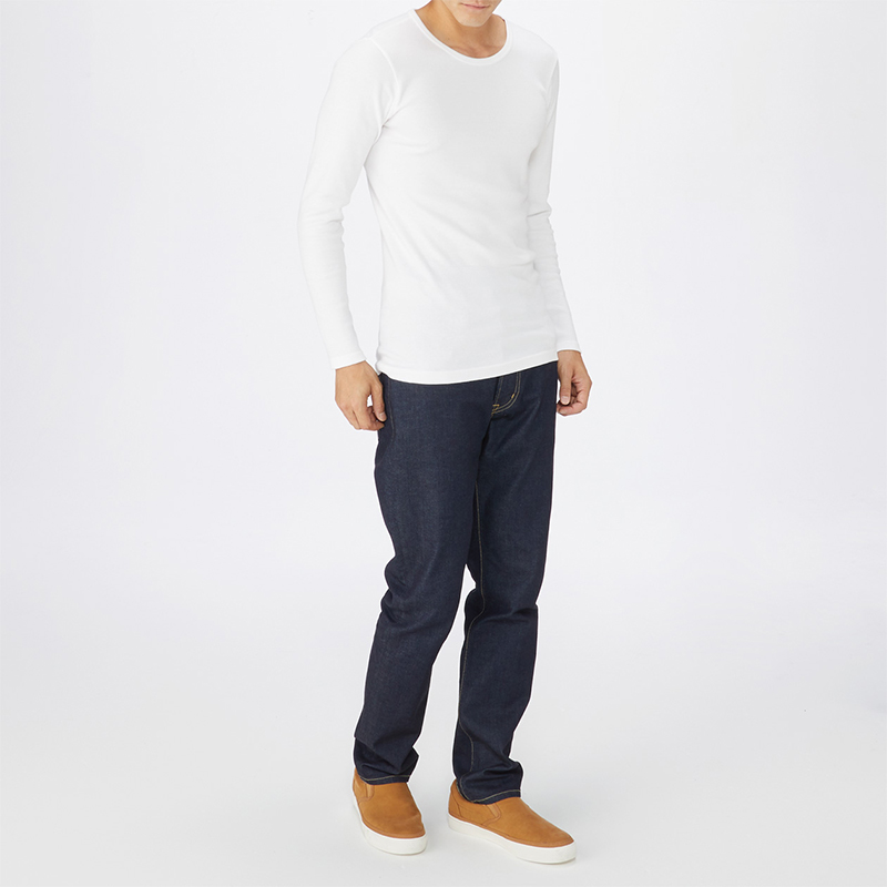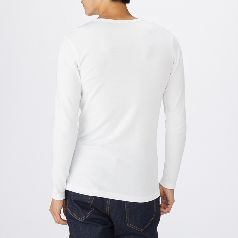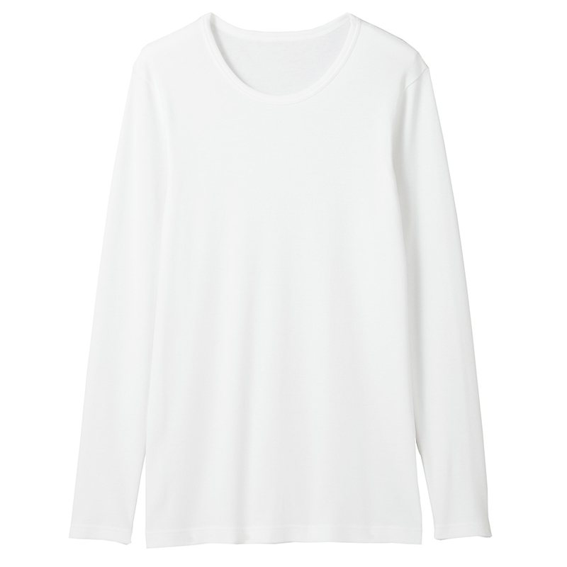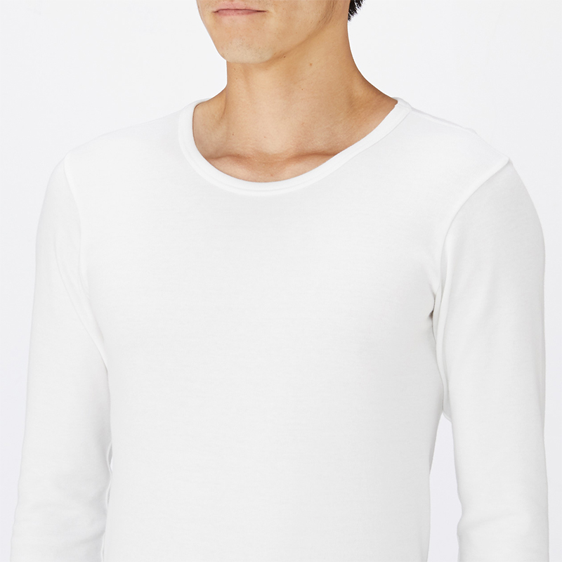 No Inprints Good Pink MUJI Men's cotton wool double roewear warm round neck long sleeve shirt