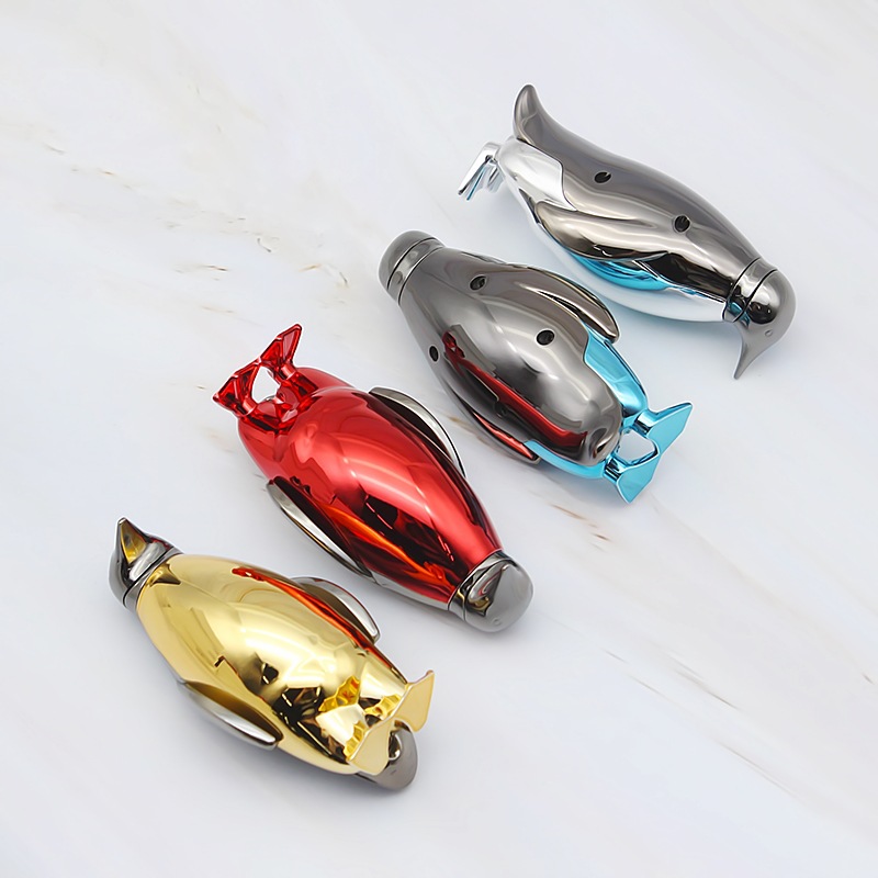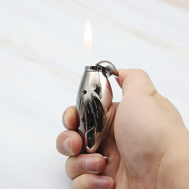 Creative pure metal dish-colored penguin model open flame lighter shape bright surface coating bottom inflatable lighter