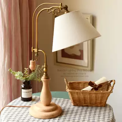 (Xiaoqing)Table lamp literary retro Nordic country ins wind solid wood decoration bedroom bed headlight